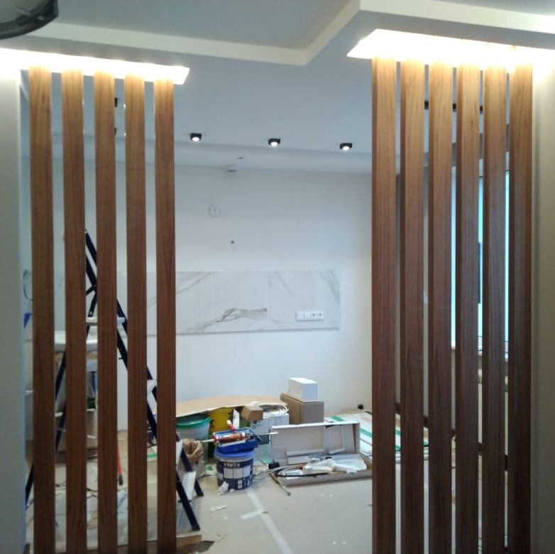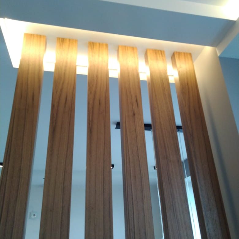 При создании стильного и современного интерьера перегородки из шпонированных реек применяются как для зонирования помещения, так и как самостоятельный элемент интерьера. Такие перегородки не препятствуют доступу дневного света и придают дизайну помещения особо стильный и современный вид. Реечная перегородка может устанавливаться совместно с шпонированными рейками, установленными на стены или потолки, что создает единый стиль в дизайне помещения. Отделка стен шпонированными или деревянными рейками — одна из самой современной и модной тенденции в дизайне жилых и общественных помещений. Огромный выбор шпона для отделки реек — от самых бюджетных вариантов (дуб, ясень, макоре) до экзотических и ценных видов (палисандр, венге, зебрано) — делает возможным создать любой дизайн — от светлых до темных декоров с различной текстурой.